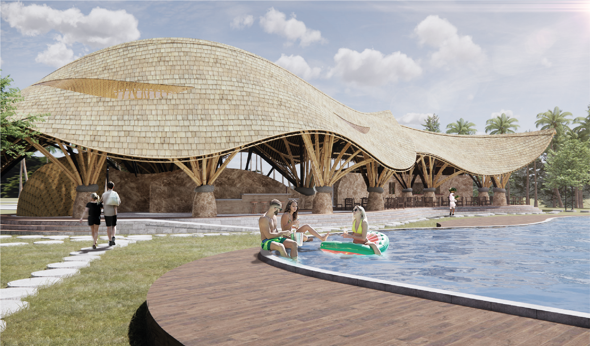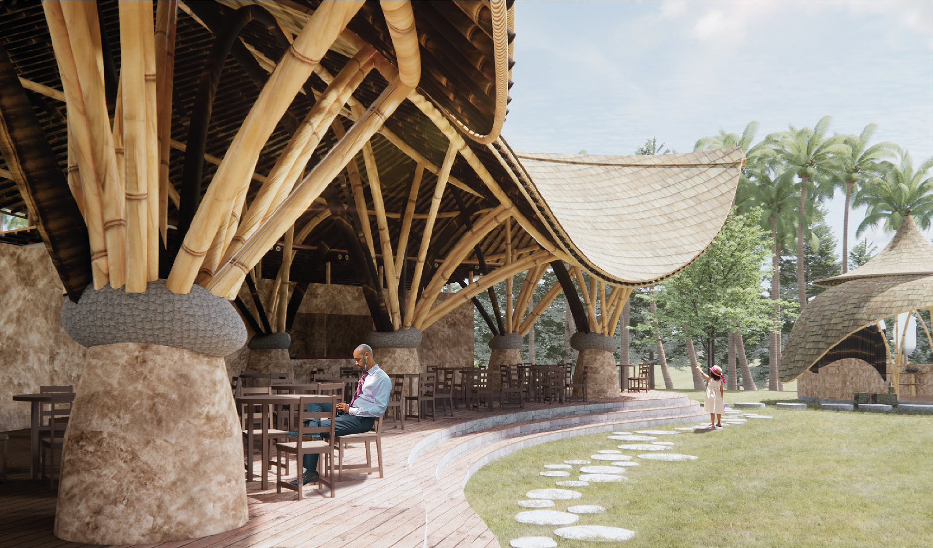 Render of Green Village Bamboo Restaurant - Rhino + Grasshopper + Enscape + Photoshop