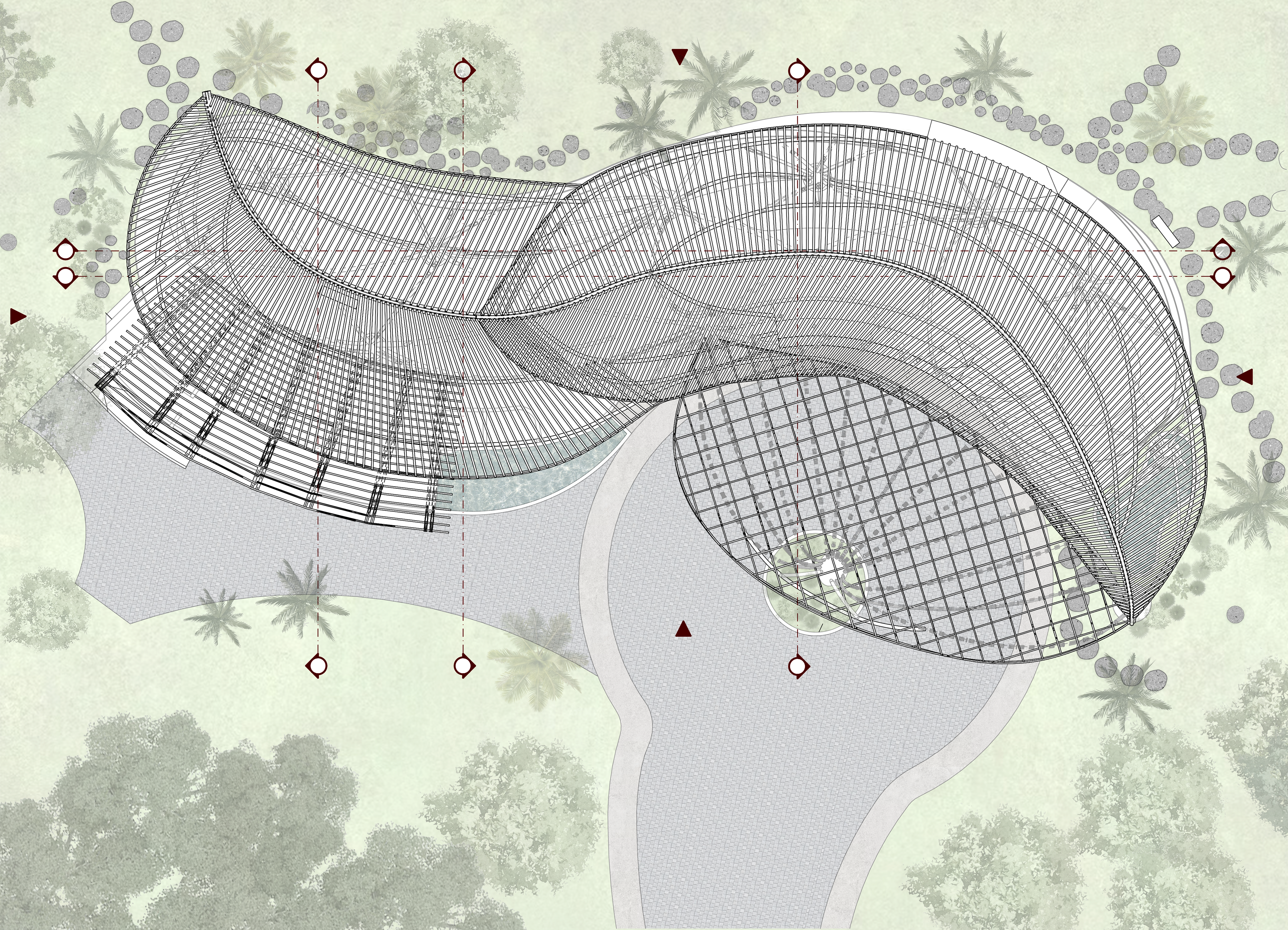 Roof Plan of the Bamboo Restaurant - Archicad + Photoshop