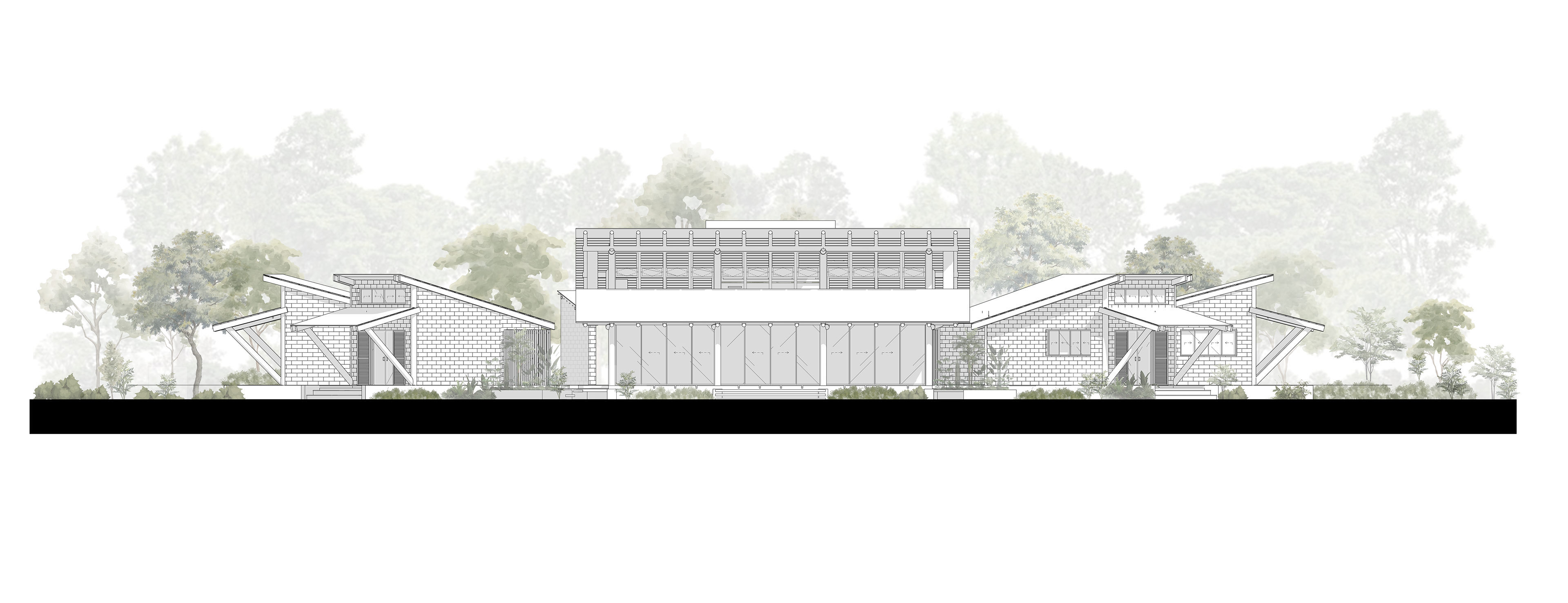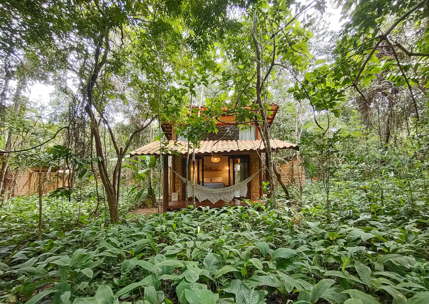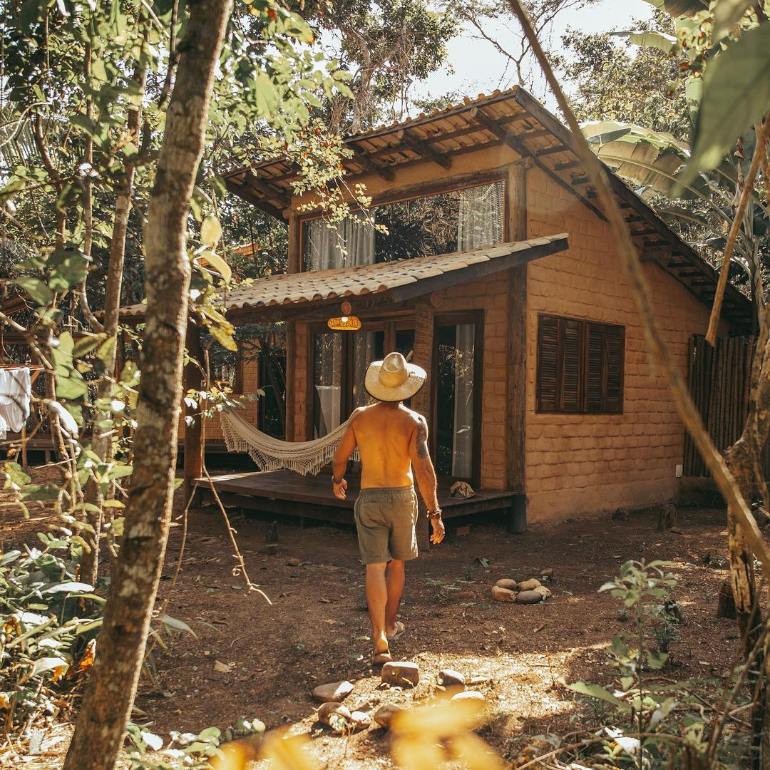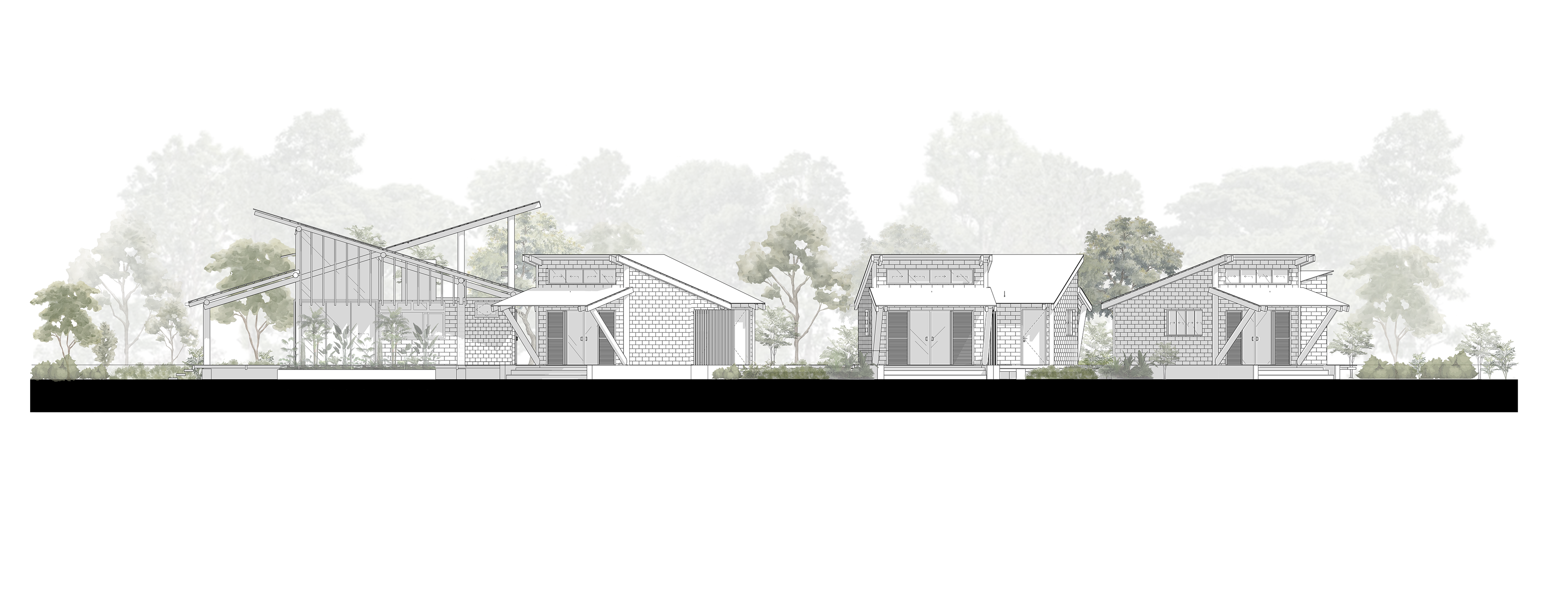 Private chalets are carefully positioned to frame forest views while minimizing environmental impact. Structures in treated eucalyptus and adobe walls made from local soil provide thermal comfort through material mass, cross ventilation, and passive strategies rooted in place. The collective building acts as the village’s heart, dissolving boundaries between interior and exterior through rammed-earth walls, generous openings, and strong connection to the surrounding forest. Ecological water systems and decentralized solar energy reinforce an integrated, low-impact approach where architecture, landscape, and daily life coexist as one system.
