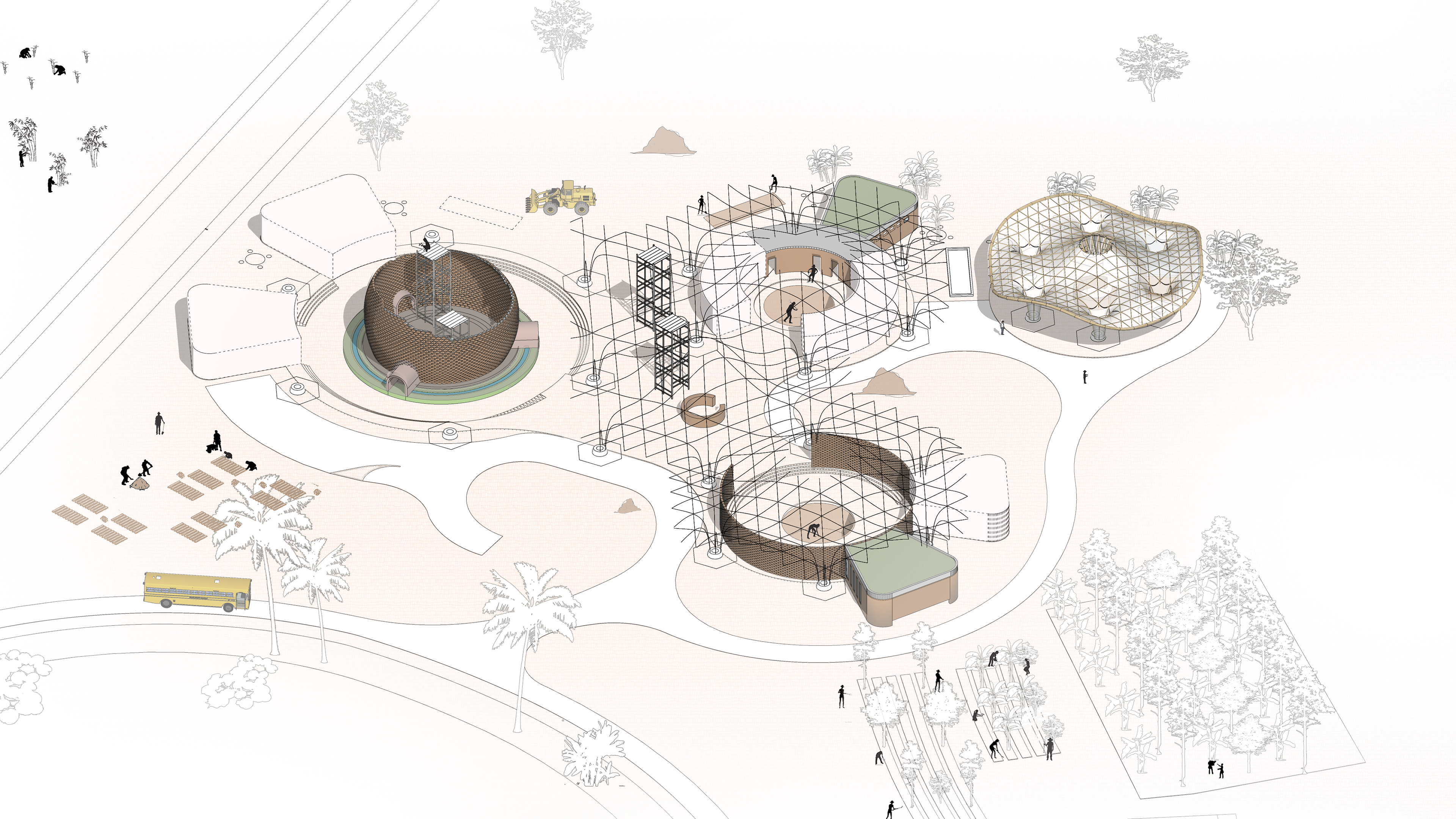 Section cut for the main building of The Apprentice's House - Rhino + Grasshopper + Archicad + Photoshop