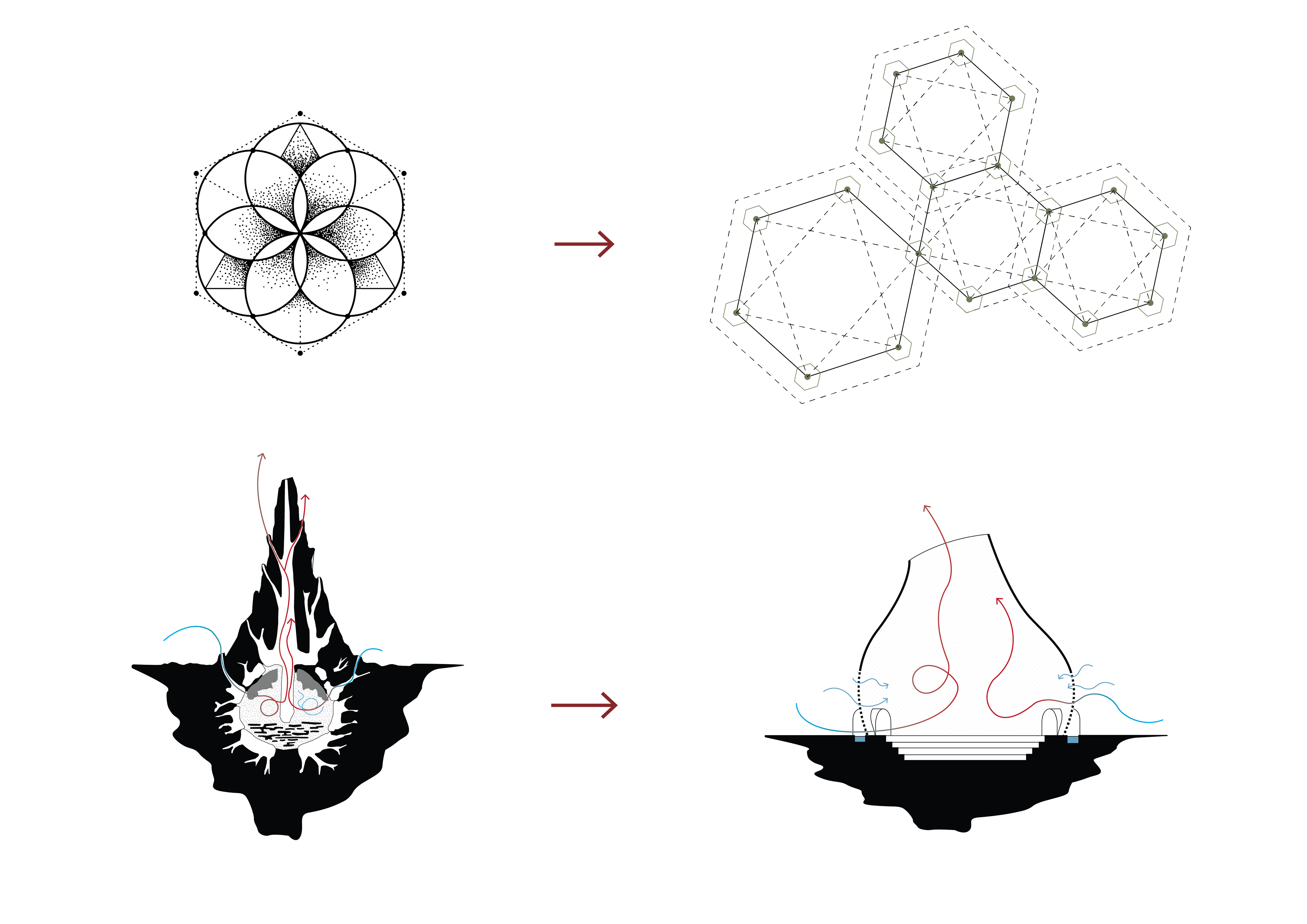 Diagram showing the Nature inspiration on the Sacred Geometry and Termites Mound - Illustrator
