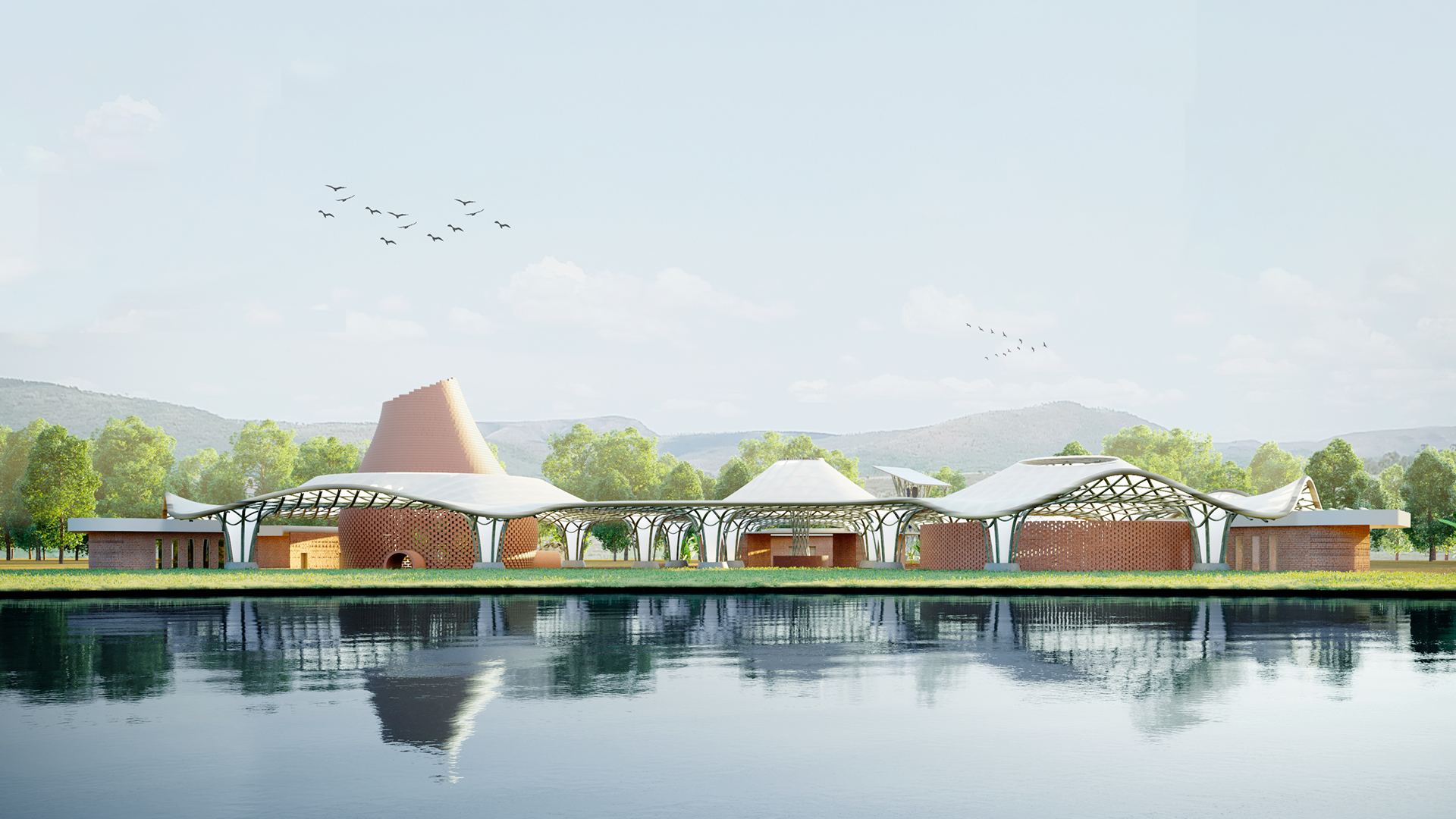 Form finding for the Roof Sheel inspired by the Site Landscape - Rhino + Grasshopper